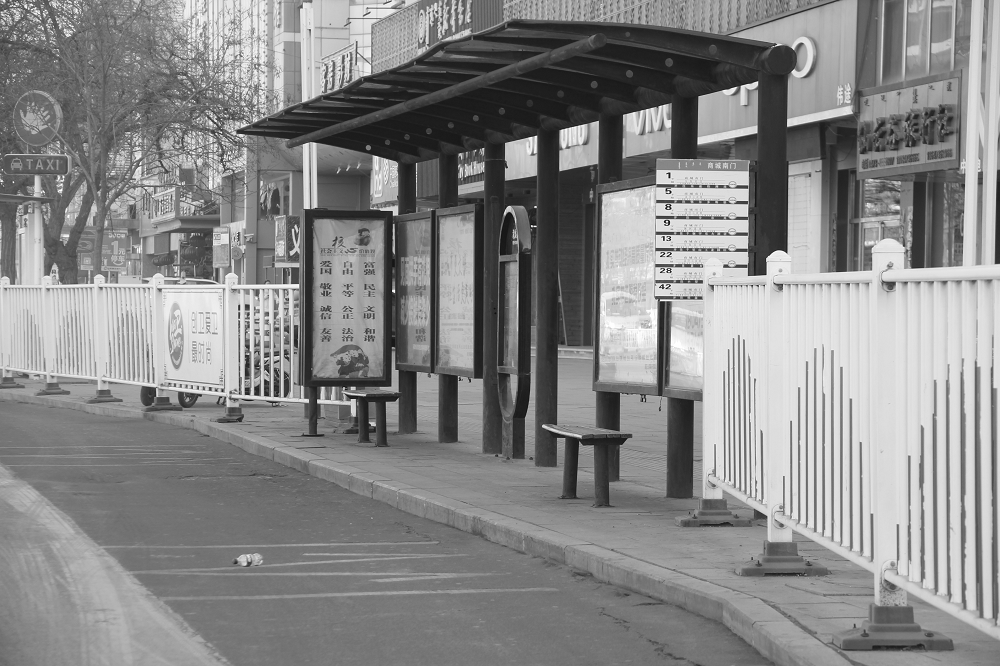 下午17:00公交车停运后的车站