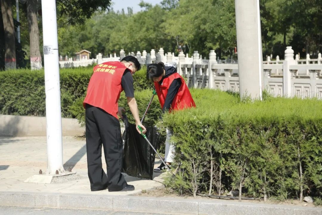为深入贯彻习近平生态文明思想,全面落实全市“美城有我”城市清洁日行动部署要求,8月29日下午,海勃湾区人民检察院10余名检察人员身着志愿红马甲,手持夹子、扫帚等工具深入包联责任路段,以“绣花功夫”开展环境卫生集中整治志愿服务,以实际行动为城市“美颜”添彩。