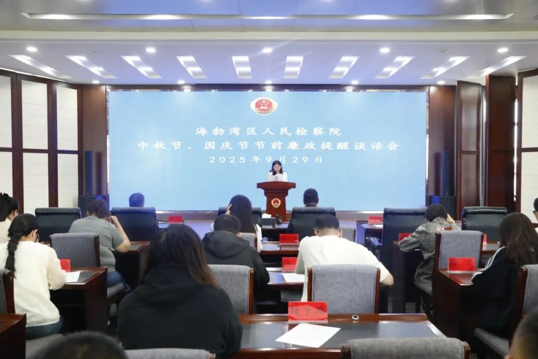 2025年中秋、国庆佳节将至,为深入贯彻落实中央八项规定精神,进一步增强全体检察人员的廉洁自律意识,营造风清气正的节日氛围,9月29日,海勃湾区人民检察院召开节前集体廉政谈话会议。