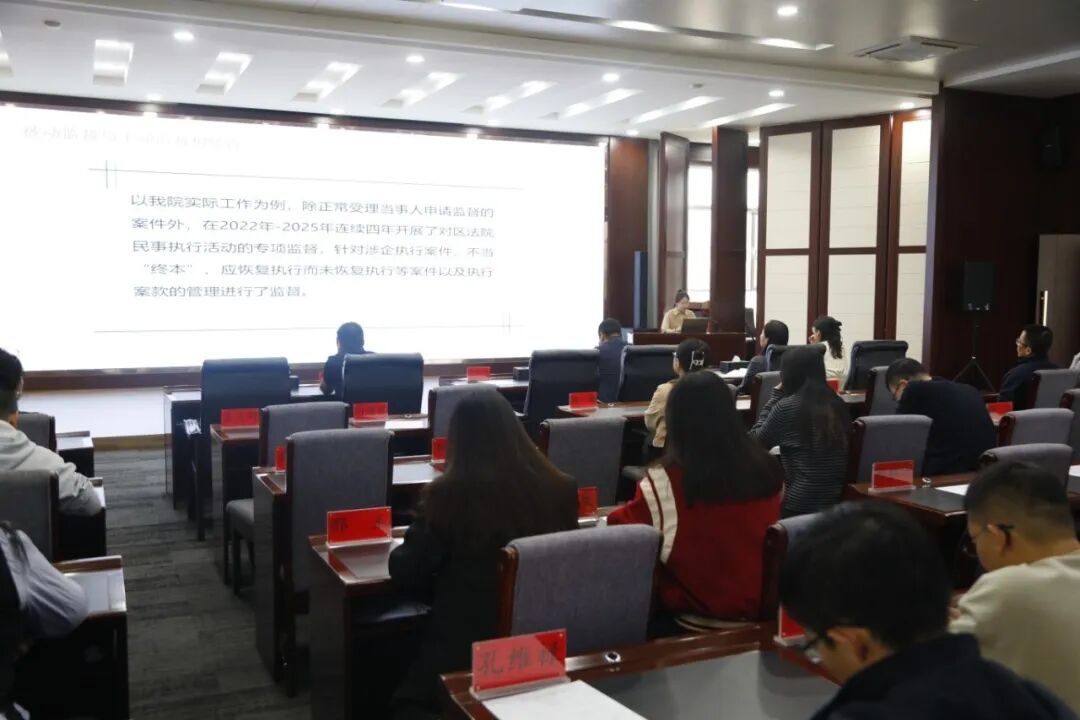 此次授课兼具理论深度与实务价值,既解读了民事执行全程监督的法律边界,又提供了可复制的监督方法。下一步,海勃湾区人民检察院将持续深化民事执行监督机制创新,以更精准、更有力的监督举措,维护当事人合法权益,助力打通司法公正“最后一公里”。