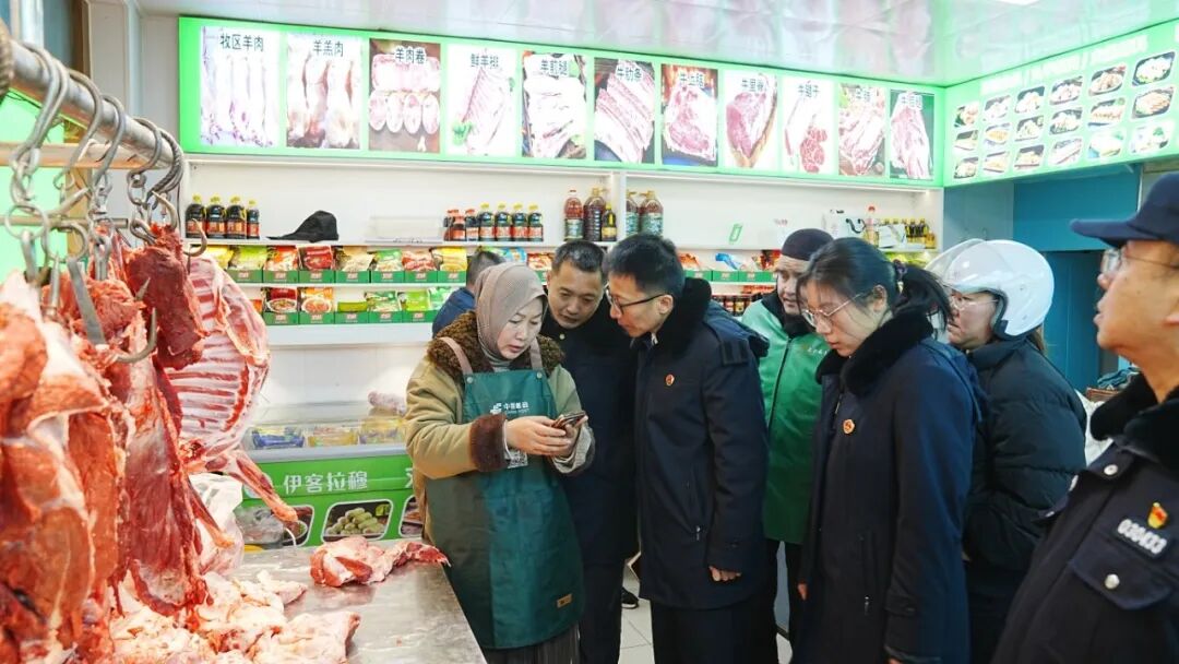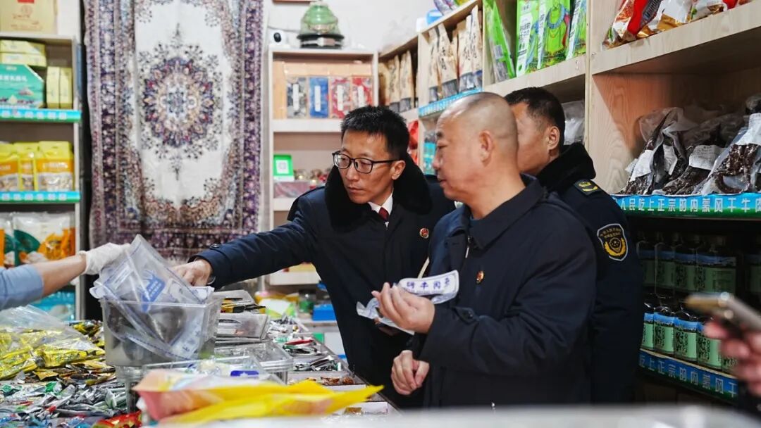 为贯彻落实最高检“食药安全益路行”检察公益诉讼专项监督活动,守护群众“舌尖上的安全”,在新春佳节来临之际,乌海市海勃湾区人民检察院联合海勃湾区公安局、海勃湾区市场监督管理局,深入辖区302农贸市场等重点场所,开展食品安全联合检查。