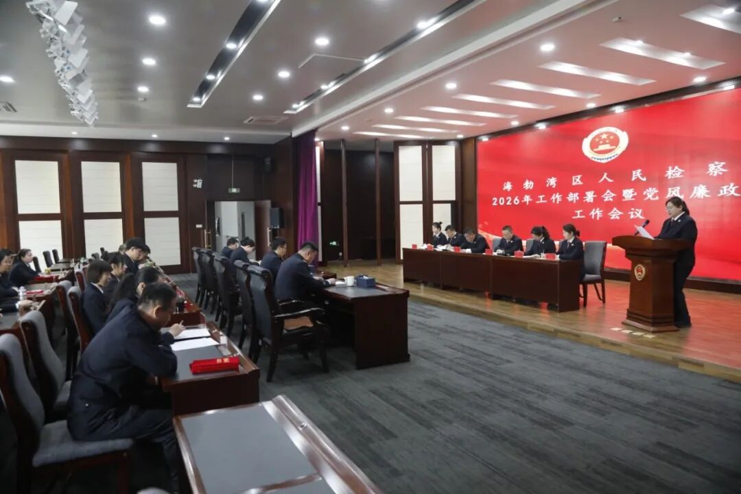 为深入学习贯彻中央政法工作会议、全国检察长会议及上级检察院工作部署,锚定“十五五”开局之年目标任务,统一思想、压实责任、明确方向。2月28日,海勃湾区人民检察院召开2026年工作部署会暨党风廉政建设工作会议,院党组书记、检察长任勇出席会议并讲话,全体检察人员参加会议。