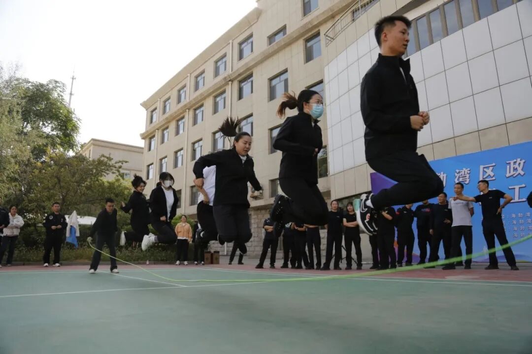 海勃湾区委副书记、政法委书记王娟、海勃湾区人民检察院党组书记、检察长任勇主持开幕式。区政法各单位5支队伍100余人参赛。运动会精心设置多元项目,兼顾团队协作与个人风采:拔河、集体跳绳、转呼啦圈吹气球、一圈到底等5个集体项目,考验着队员们的默契与合力,赛场上选手们齐心协力、奋勇拉绳,同步跳跃的身影成为一道热血风景线;乒乓球、台球等个人项目则尽显竞技魅力,选手们挥拍对垒、精准击球,展现出政法干部职工文武兼备的一面。