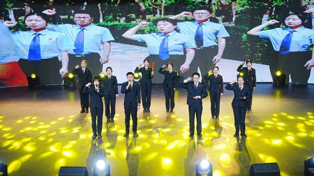 紧接着,舞台光影流转,呈现了公益诉讼检察官《守护·那片青绿》的铿锵行动。面对被污染的河流与“老渔夫”失落的乡愁,检察官们誓言“以法律之利剑,斩断污染黑手;以文明之柔琴,弹奏共生乐章”,演绎了检察机关作为“公共利益代表”的主动担当。