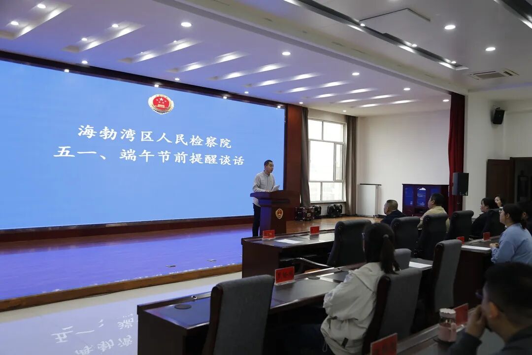 五一、端午节将至,为锲而不舍落实中央八项规定精神,持之以恒纠“四风”树新风,推进作风建设常态化长效化,4月28日,海勃湾区人民检察院党组成员、派驻纪检监察组组长周建涛主持开展五一端午节前提醒谈话。