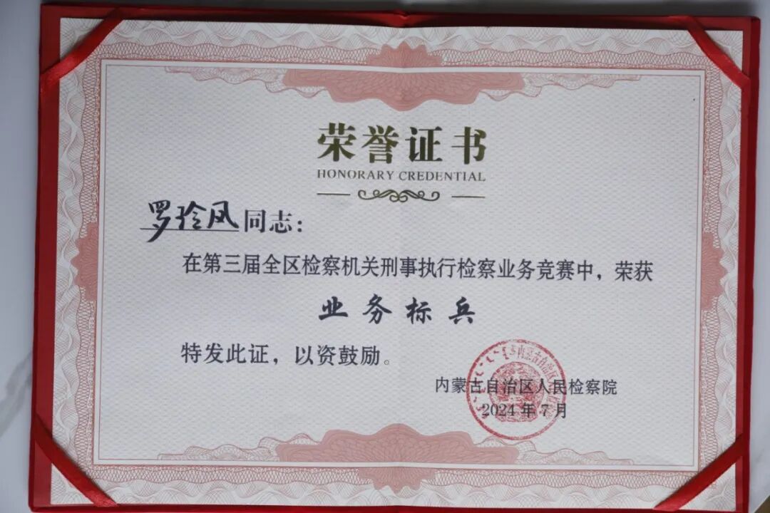 此次比赛包括初赛、复赛两个环节,涵盖综合业务知识笔试、案件审查与文书制作等多项业务能力的考验。经过两天激烈的角逐之后,罗玲凤的综合成绩在全区排名第一,荣获第三届全区检察机关刑事执行检察业务竞赛业务标兵称号!