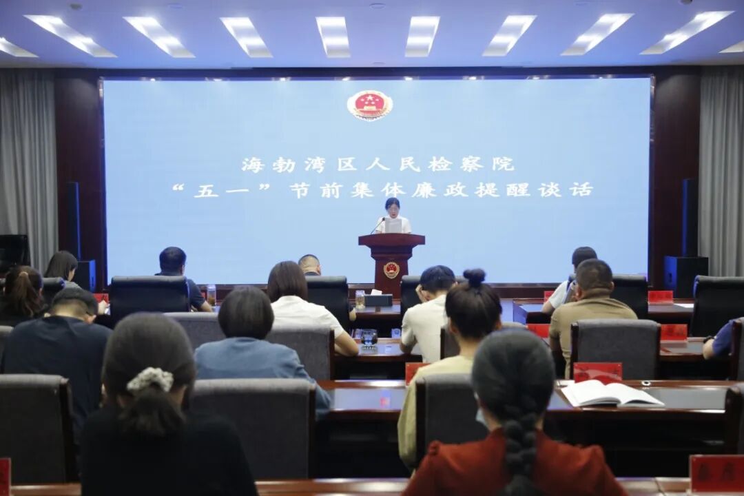 为深入贯彻中央八项规定精神,强化节日期间纪律作风建设,营造风清气正的节日氛围,4月30日下午,海勃湾区人民检察院召开“五一”节前集体廉政提醒谈话会,会议传达了海勃湾区纪委关于深入贯彻中央八项规定精神,严明五一、端午期间纪律的有关要求,学习了违反中央八项规定精神典型案例,并提出了规范过节的几点要求:
